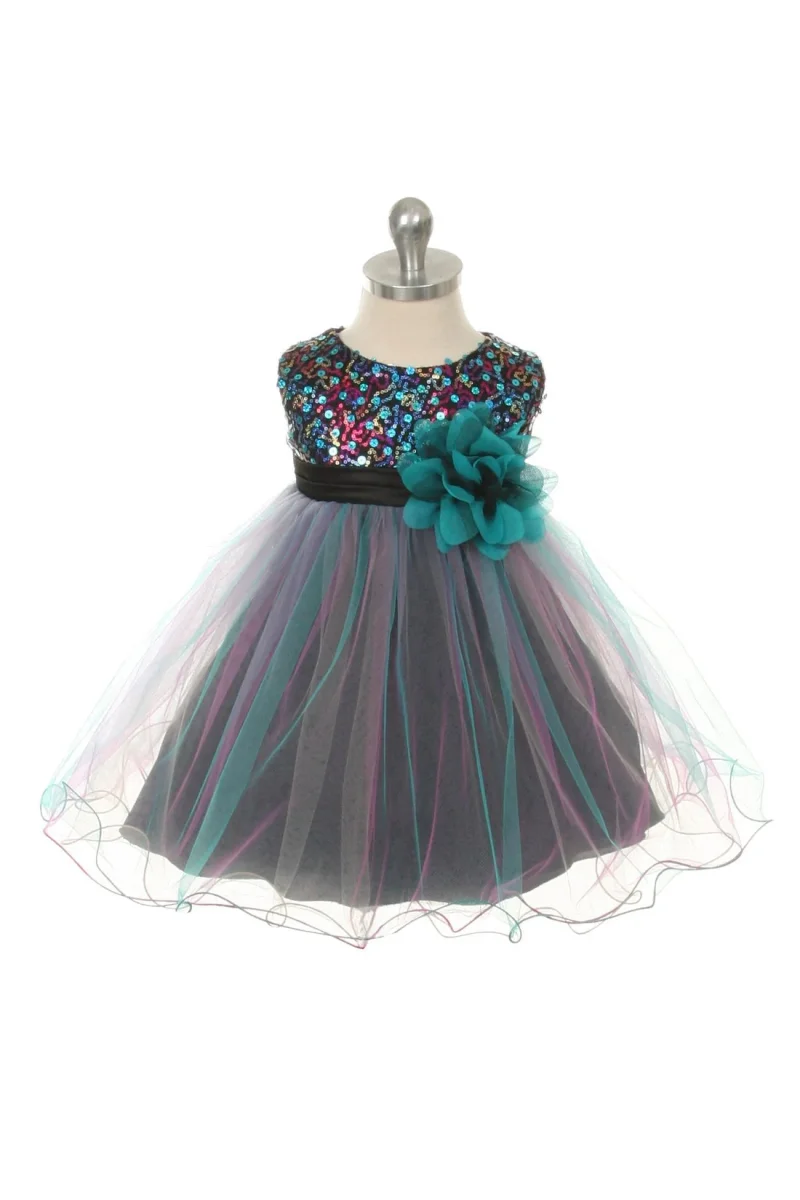 Baby Girl Multi-Sequin Trio Color Tulle Party Dress- AS328 Kids Dream