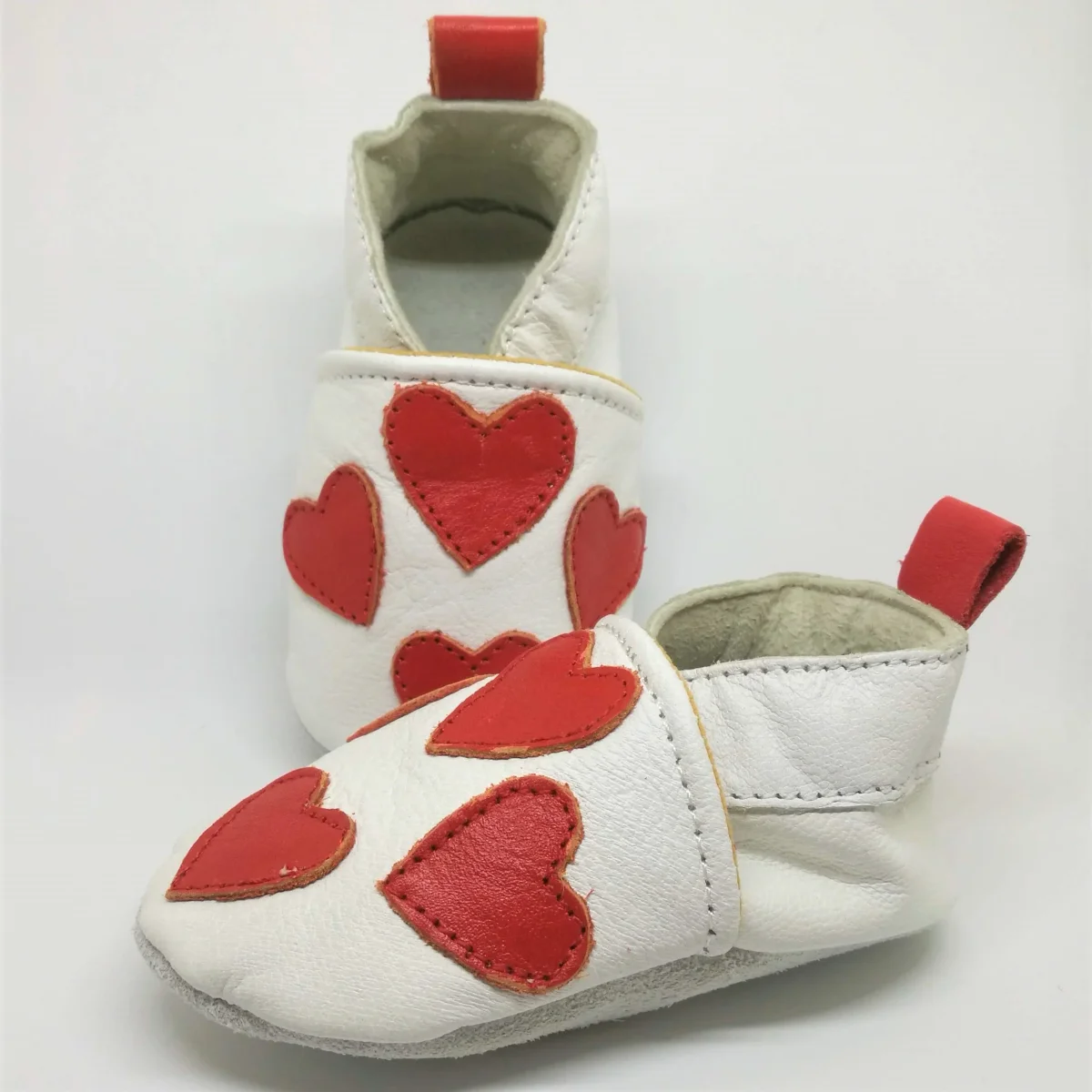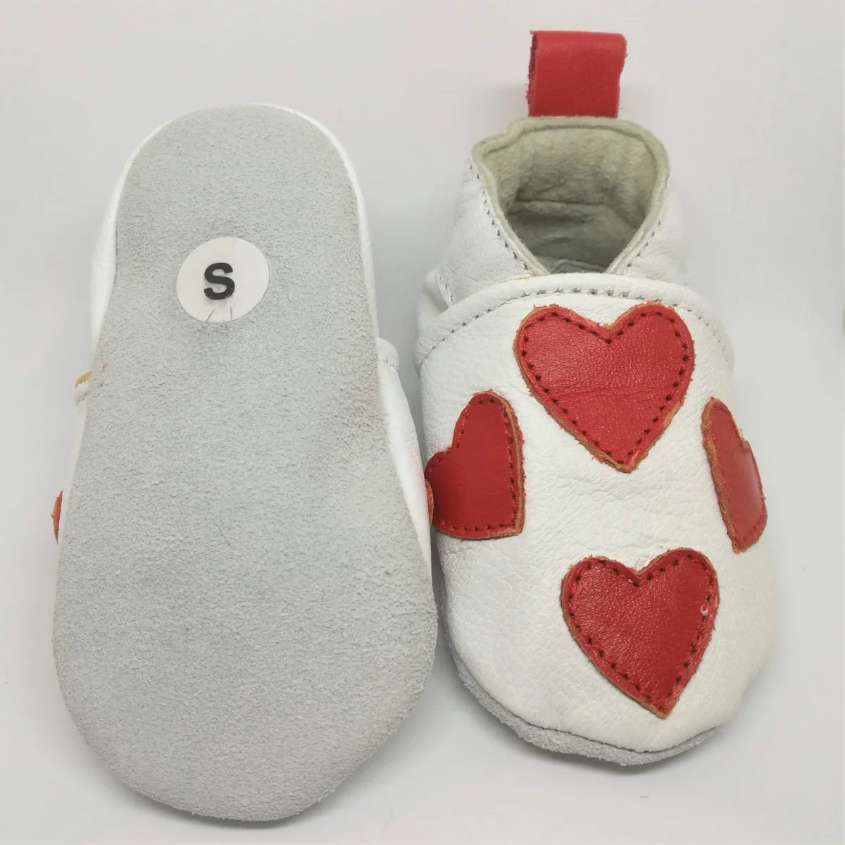 Babysko i mjukt skinn med hjärtan