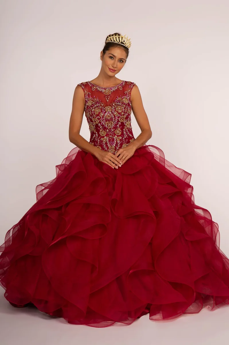Shop our collection by Elizabeth K- GL2511. Elizabeth K GL2511 is a stunningly beautiful piece that will make you stand out in any crowd. Featuring a flowery design adorned with a dazzling display of iridescent stones, this stunning item features an illusion bateau neckline.