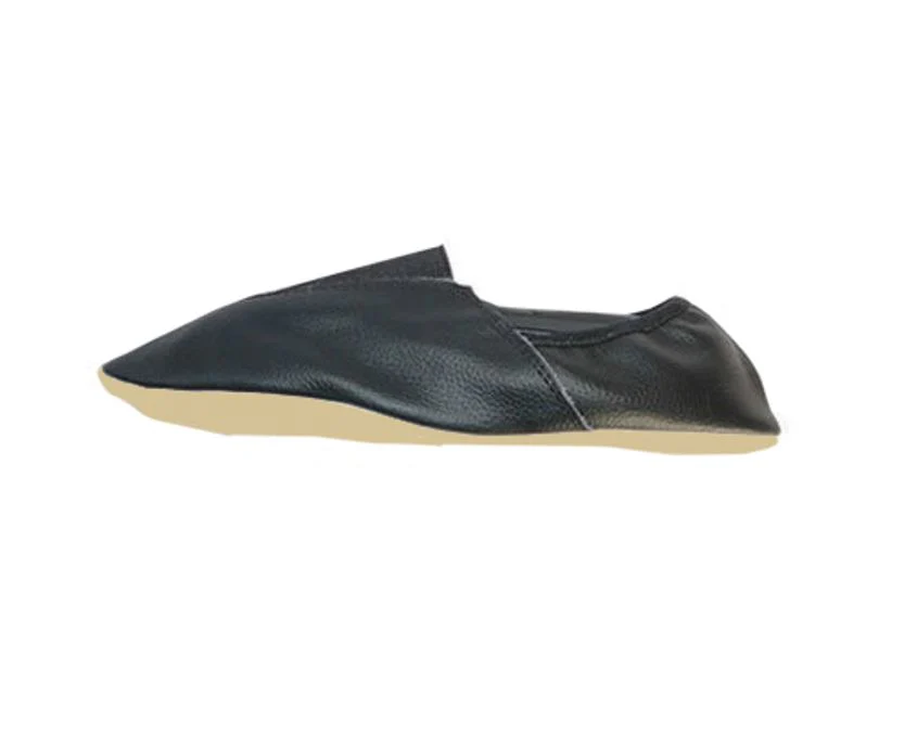 Svart jazzsko i skinn med gummisula. Formar sig fint efter foten och ger bra fäste.
