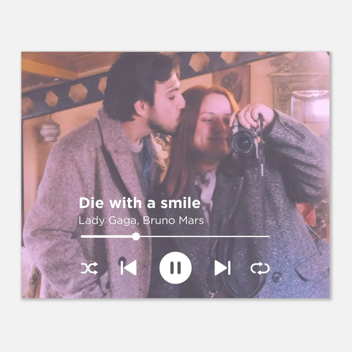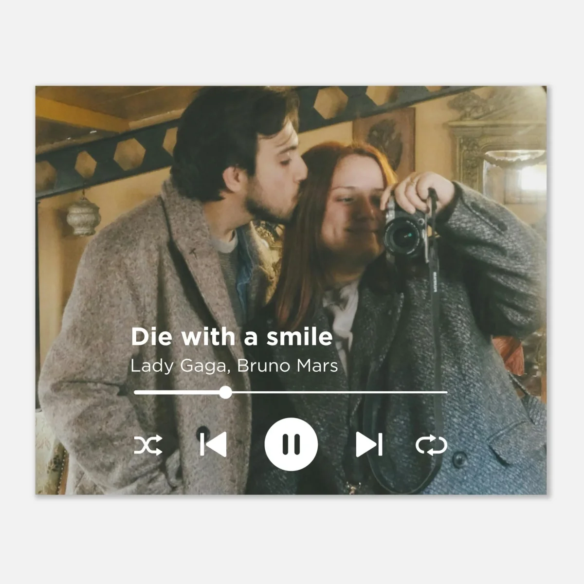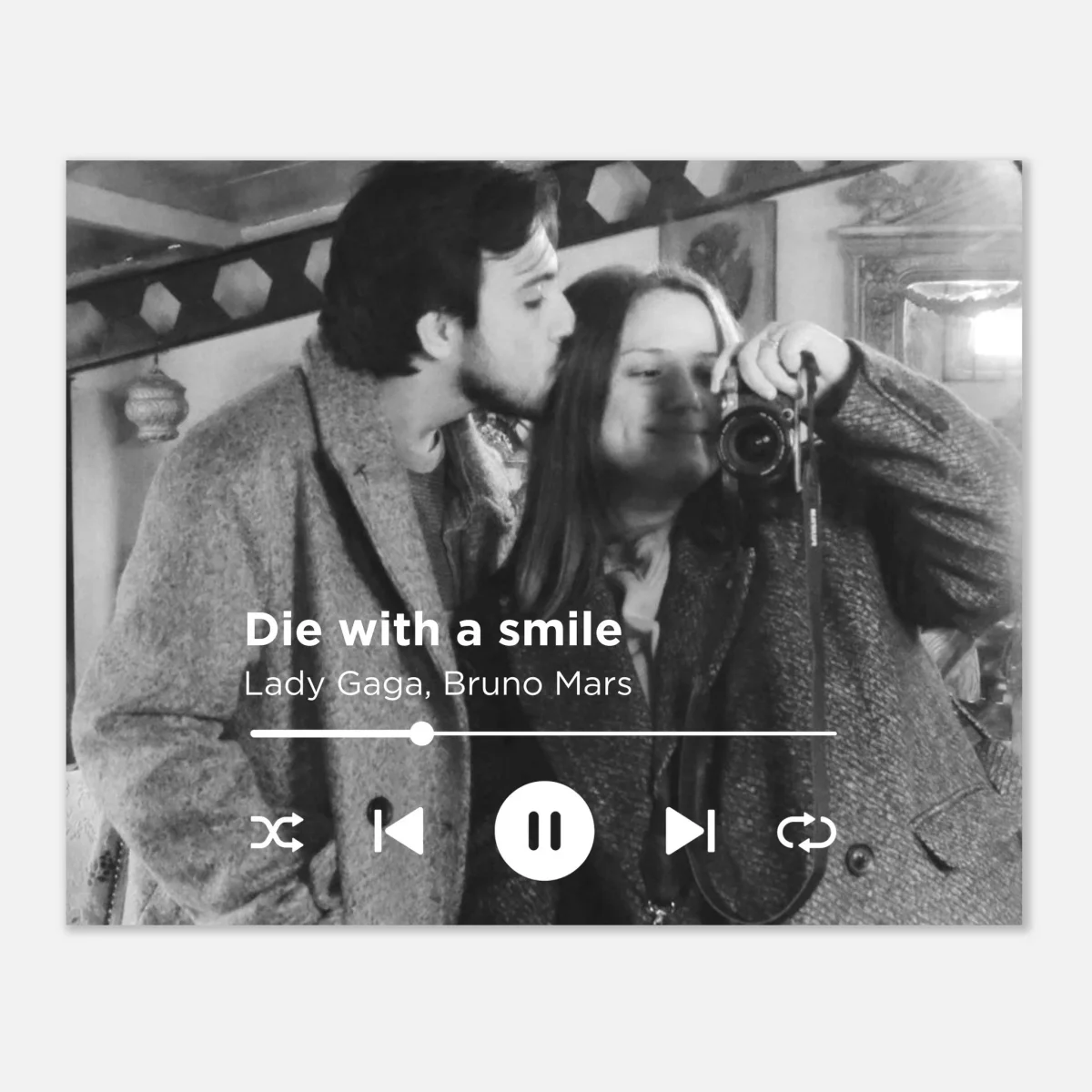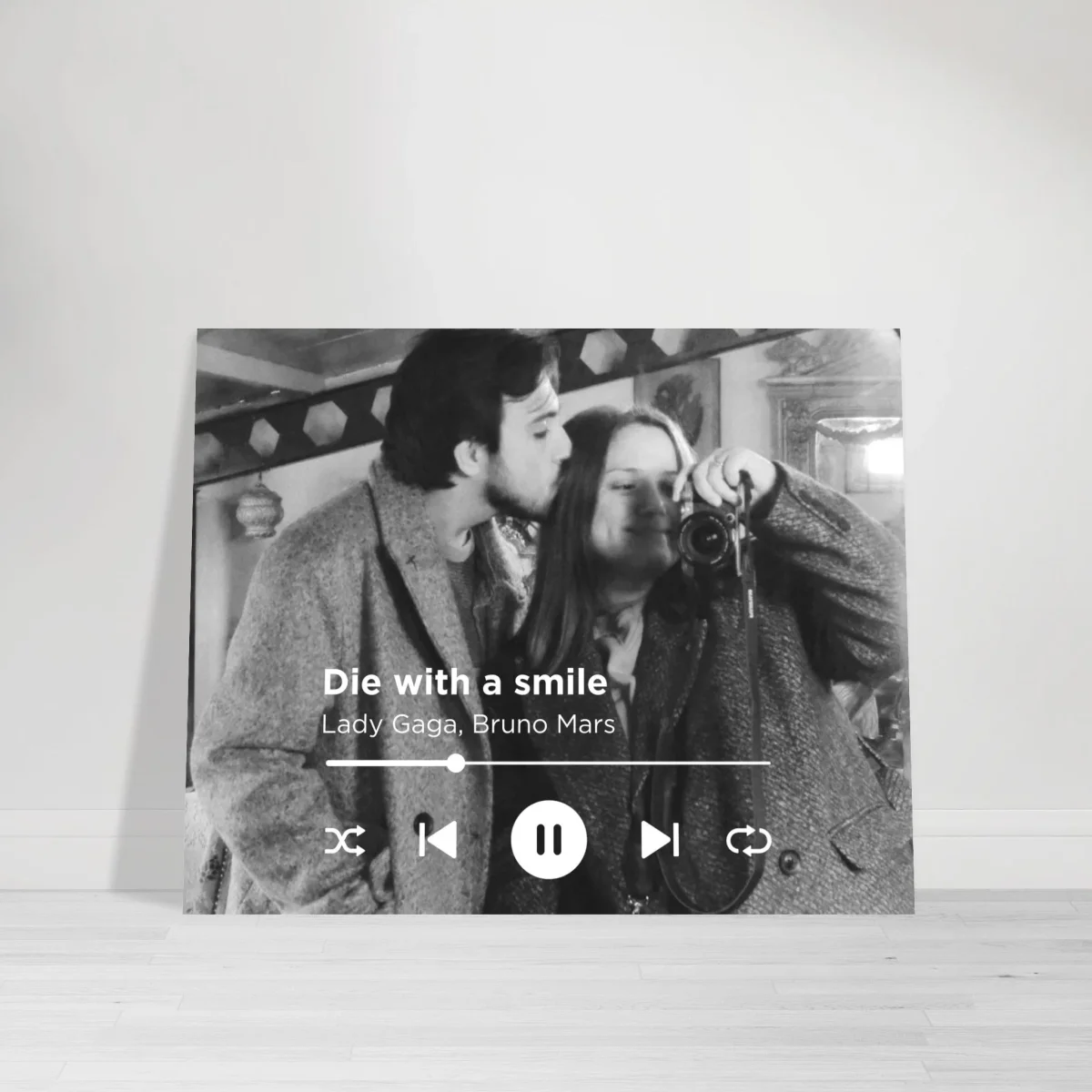 Skapa din egen unika poster med din favoritlåt och din favoritbild! Den här personliga designen är perfekt för att fånga ett minne, en känsla eller en speciell ögonblick genom musik och bild. Du kan ladda upp din egen Spotify QR-kod och få den med på din poster. Perfekt för att ge bort som en present! 🎁
