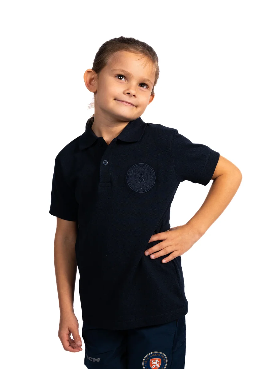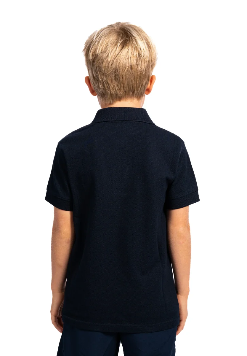 Vår fina piké till barn, med en ton i ton logga på vänster bröst.