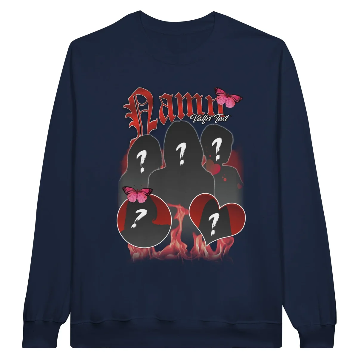 Denna design är något alldeles extra och skapad för att låta dig uttrycka din unika stil med dina egna bilder! Perfekt för att skapa en personlig tröja till ditt älskade husdjur eller för att visa din kärlek och beundran för din partner på ett helt unikt sätt. Våga sticka ut med en design som är både iögonfallande och meningsfull – oavsett om det är för din fyrbenta vän eller en kärleksfull hyllning till din soulmate, kommer denna tröja garanterat att bli en riktig showstopper!
