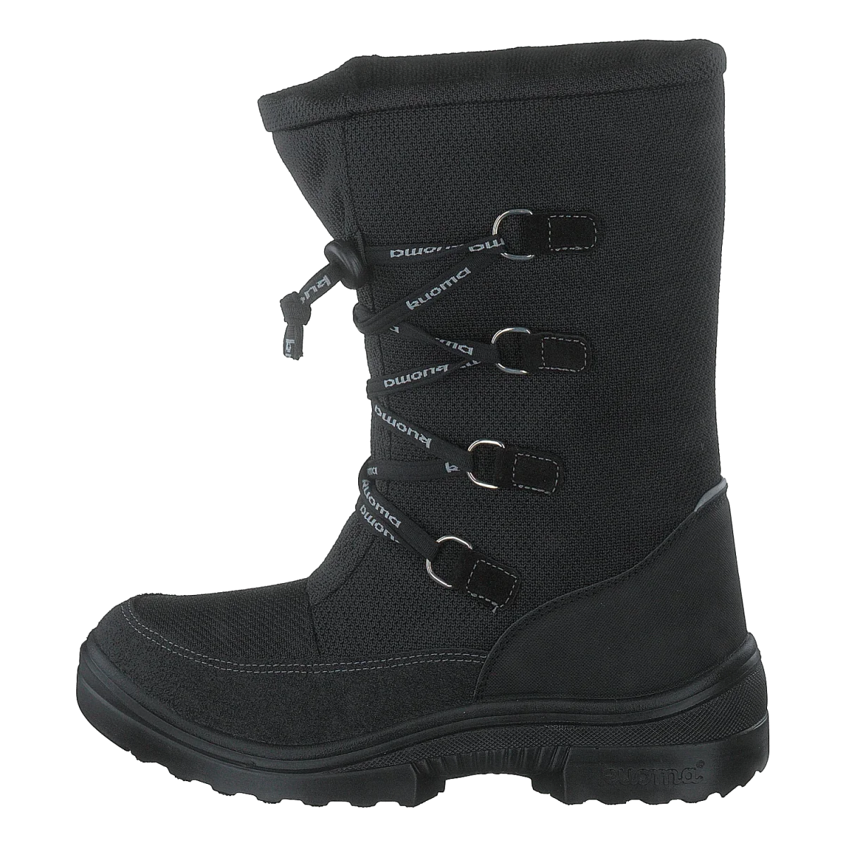 Rocky mid-calf boots har Kuoma logosnören med snabbkoppling och fästmekanism för justering av skaftet. En superlätt och varm vinterfritidssko för alla. Materialen är vatten- och smutsavvisande textil, PU-belagt delat läder och varmt luggfoder. Bred passform.