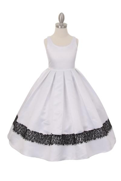 back zipper entrance – exchangeable sash and included – Length-Tea Elegant scoop neck A line satin lace trimmed pleated dress with back eyelet lace around the skirt and ribbon tie for best comfort. Perfect your special occasion