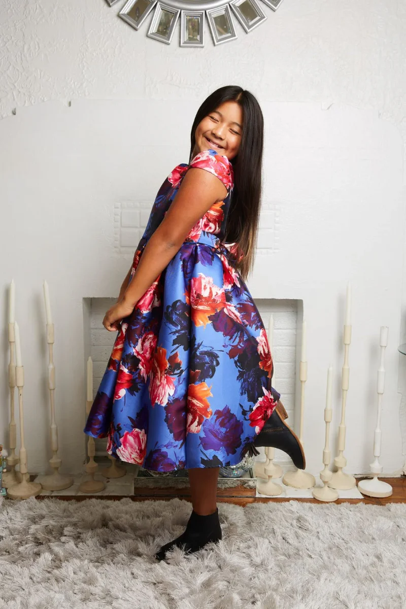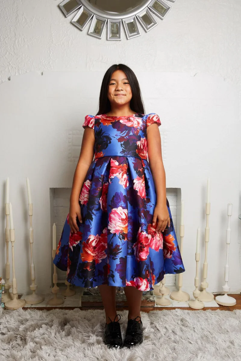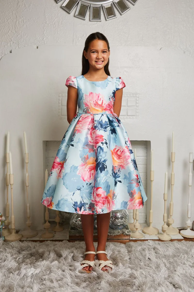 Swathed in a beautiful watercolor floral print and crafted from smooth mikado fabric, this dress is sure to impress. The elegant cut and simple silhouette make it perfect for everything from a picnic to a special event. Comes in 3 gorgeous colors and features cap sleeves, a pleated skirt, and a sash tie.